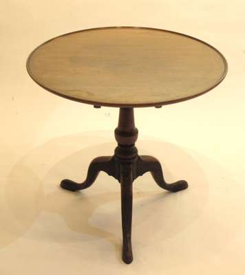the circular moulded lipped top over a birdcage above a vase shaped column, tripod cabriole legs terminating in pad feet