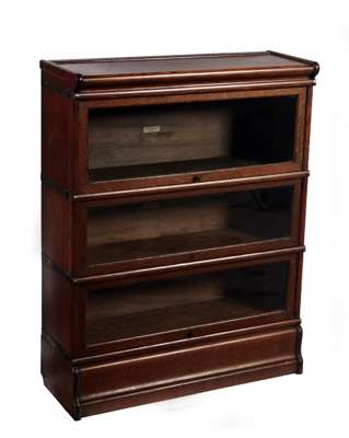 TWO GLOBE-WERNICKE THREE SECTION OAK BOOKCASES