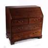the slant front enclosing a fitted interior, over two short and two long drawers, raised on bracket feet