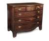the serpentine top over three short and three long drawers above a shaped apron with diamond inlay band centred by a fan medallion, raised on bracket feet