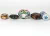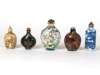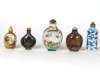 FIVE CHINESE SNUFF BOTTLES AND STOPPERS