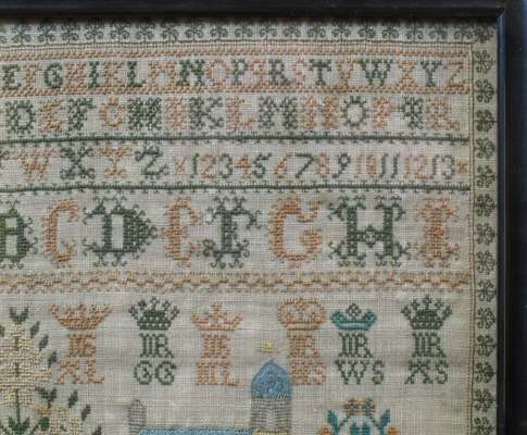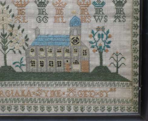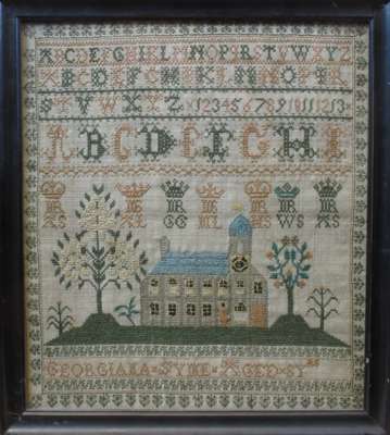 NEEDLEWORK SAMPLER, BY GEORGIANA SYME, AGED 8 YEARS