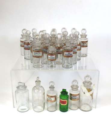 LARGE COLLECTION OF CLEAR GLASS APOTHECARY BOTTLES