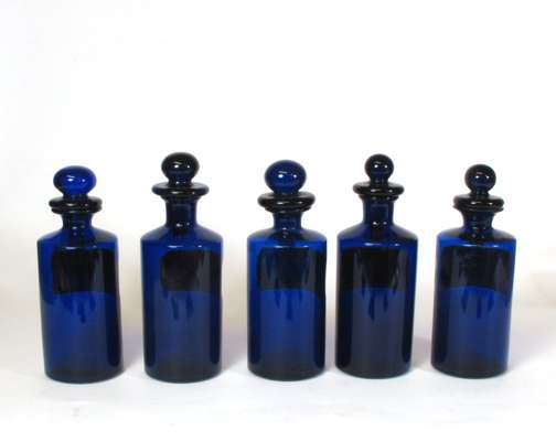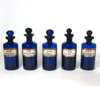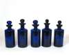FIVE BLUE GLASS APOTHECARY BOTTLES