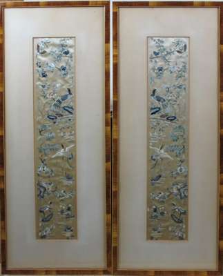 PAIR OF FRAMED CHINESE SILK PANELS