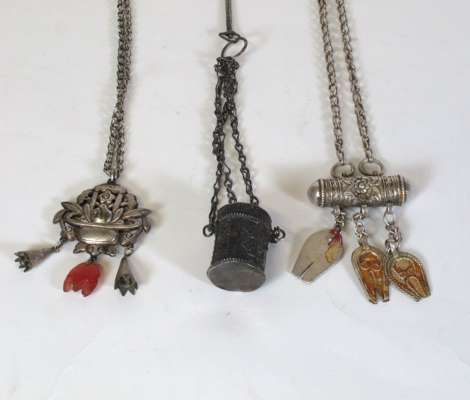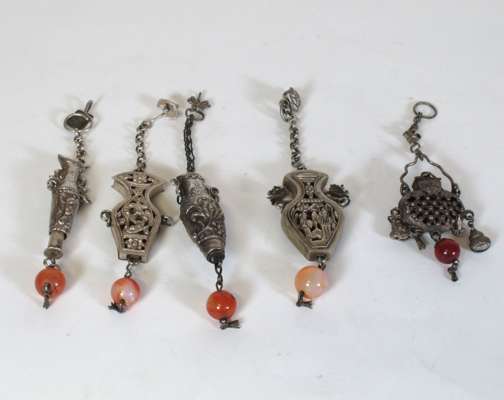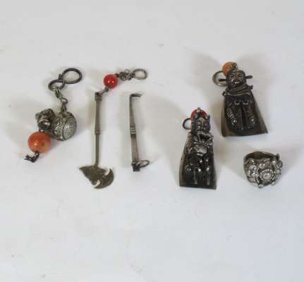 GROUP OF CHINESE WHITE METAL AND BEAD ORNAMENTS AND ACCESSORIES