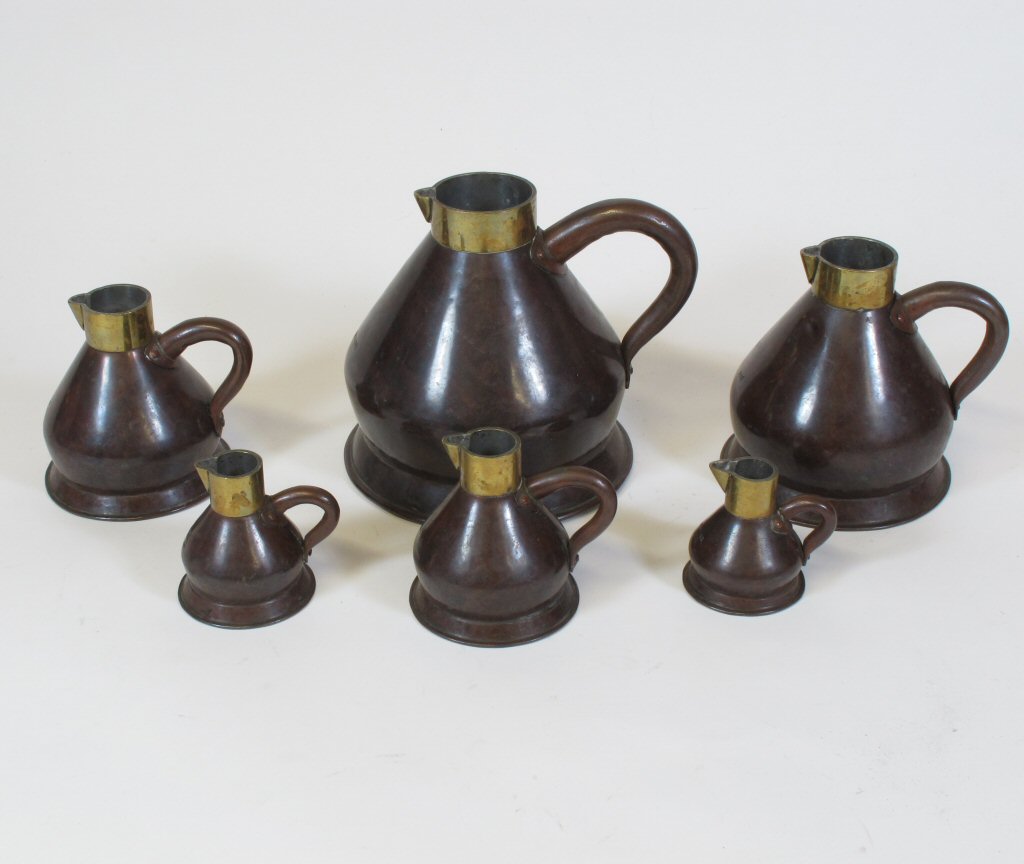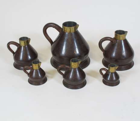 GRADUATED SET OF COPPER AND BRASS LIQUID MEASURES