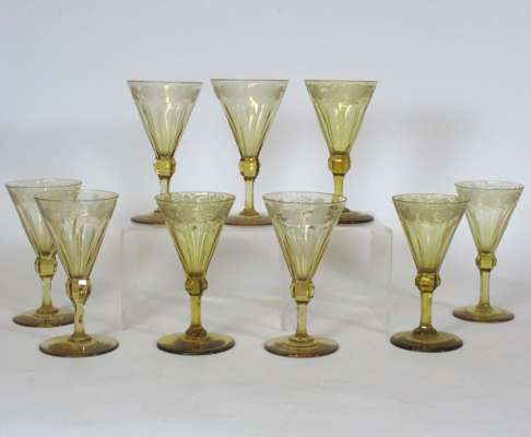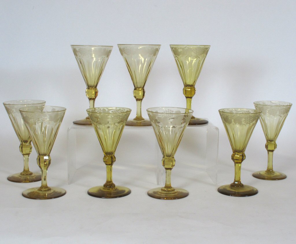 GROUP OF AMBER WINE GLASSES