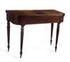 with rosewood cross banded top and full width frieze drawer, on Gillow's type legs, brass caps and castors