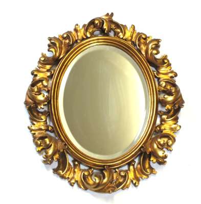 oil on canvas, of rectangular form contained in a giltwood frame with scrolled foliate border, 71cm wide, 83cm high; and a Venetian style giltwood mirror with bevelled mirror plate and ornate scrolled foliate border, 50cm wide, 60cm high (2)