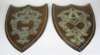 TWO BRASS STUDDED LEATHER DISPLAY SHIELDS