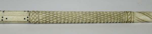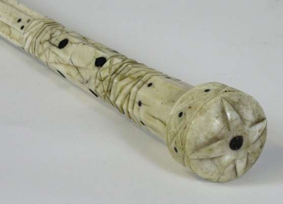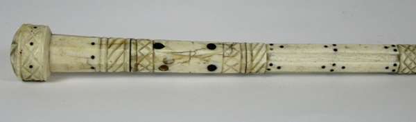 CARVED MARINE IVORY AND BONE INLAID WALKING CANE