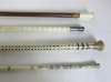 the first with naive scrimshaw design, 88cm long; the second carved into bands, surmounted by a silver handle, 84.5cm long; together with a vertebrae walking cane, 88.5cm long; and a wooden walking cane with a tapering inlaid ivory handle, 89cm long (4)
