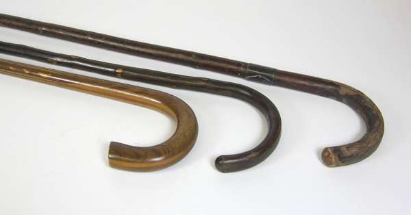 each of assorted shape and size, including a buffalo horn example, a sword stick and one inscribed with the collector's initials 'G. B. S.'; plus a fly whip and riding crop (17)