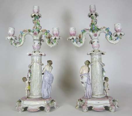 PAIR OF GERMAN PORCELAIN CANDELABRA