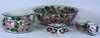 comprising: a large basin, with painted and impressed marks 'Wemyss', 39.5cm diameter; a chamber point, with painted and impressed marks 'Wemyss', 22cm diameter; an inkwell (lacking covers), impressed marks 'Wemyss Ware R. H. & S.', 18cm wide (at widest point); a frilled bowl, with painted and impressed marks 'Wemyss', 12.5cm diameter; and a Chesham fern pot, impressed marks 'Wemyss' and painted 'Wemyss K980', 8.5cm (5)