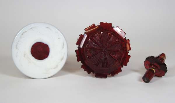 TWO RED GLASS BOHEMIAN STYLE SCENT BOTTLES