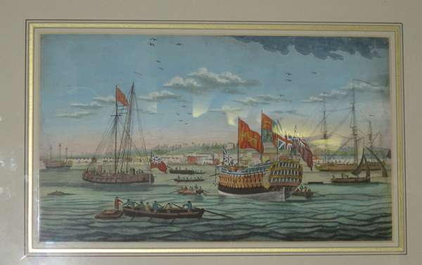 the first depicting 'A View of His Majesty's Dock Yard at Chatham in the County of Kent, on the River Madway'; and the second depicting 'A view of His Majesty's Dock Yard at Portsmouth, in the County of Hampshire. The British Channel' (2)