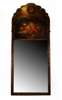 the rectangular mirror plate surmounted by a painted panel depicting a vase of flowers and a shaped pediment with a carved gilded shell