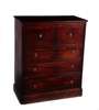 the moulded rectangular top over two deep short drawers and three graduated long drawers, raised on a plinth base