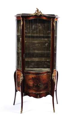 A LOUIS XV STYLE BRASS MOUNTED SERPENTINE VITRINE