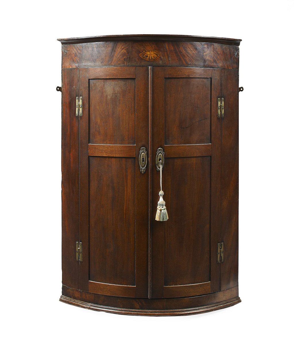 GEORGE III MAHOGANY BOWFRONT HANGING CORNER CUPBOARD