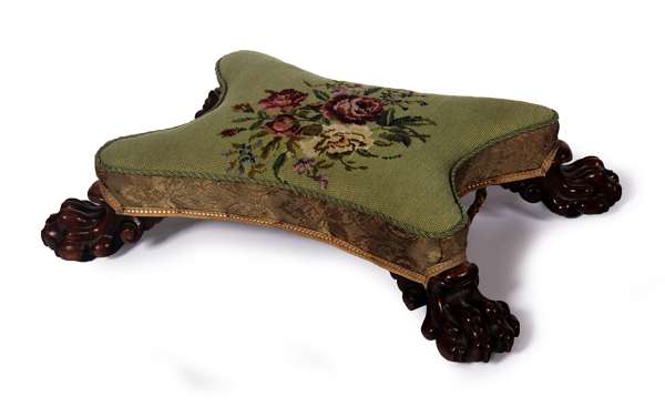 WALNUT AND NEEDLE POINT UPHOLSTERED FOOT STOOL