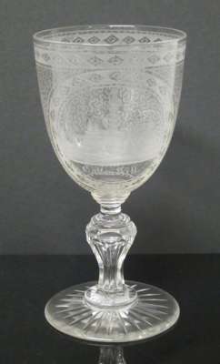 VICTORIAN ETCHED AND CUT GLASS EWER AND GOBLET, HOLYROOD GLASS WORKS