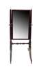 the upright rectangular plate supported within reeded circular section uprights with turned ivory finials, turned cross stretcher, reeded down swept legs with brass caps and castors