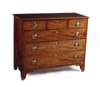 the rectangular top above three short and three long graduated drawers, oval brass backplates and loop handles, ivory escutcheons, all raised on bracket feet