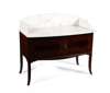 comprising a two door bow front wardrobe, oval inlaid detail to the doors, the central section with cupboard and drawers, all on splay legs, with a marble top matching washstand