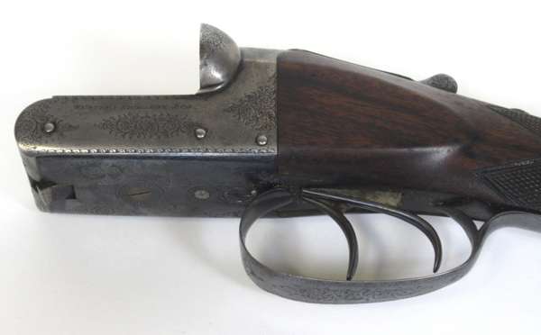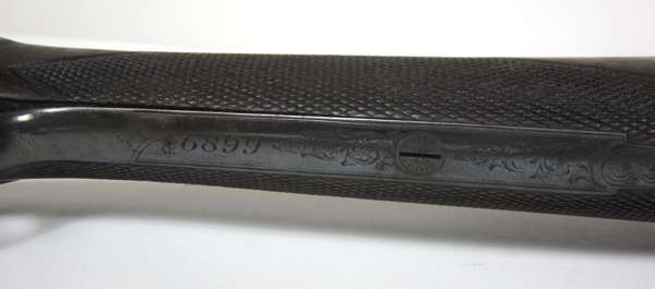 straight hand, short stock, cased in leather motor case, sold as stock action and fore-end, Deeley's patent ejector 2081, Anson & Deeley's patent 10790 (please note the purchaser must have a current UK shotgun certificate or a valid RFD licence)
