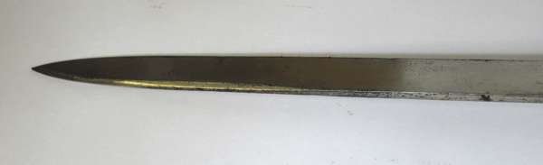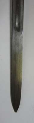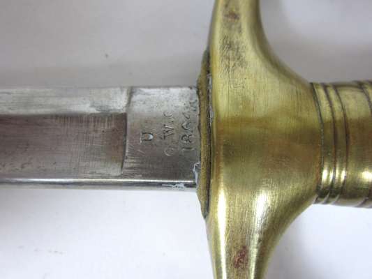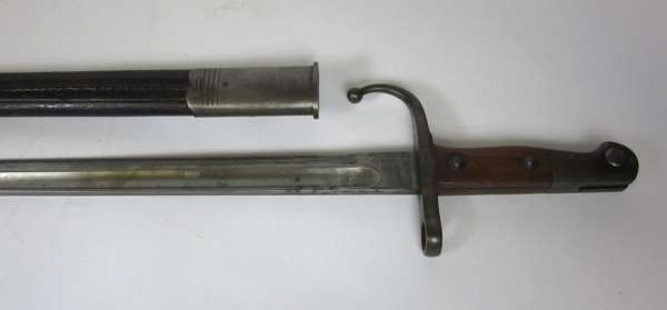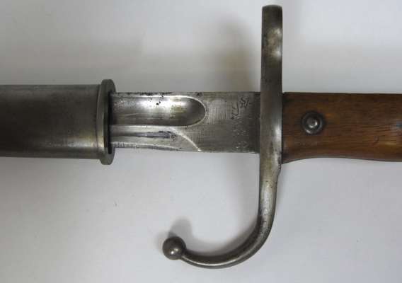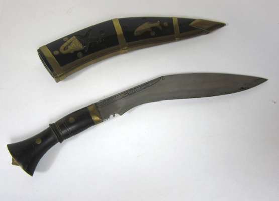 comprising of: an infantry officer's backsword with single edged etched blade, broad handguard and leather field service scabbard, 100cm long; an 1864 American brass hilted officer's sword, plain single edged blade, brass mounted black leather scabbard, 90cm long; a late 19th century sword bayonet with Hindu script, in black leather scabbard, 60cm long; three Gurkha kukris; and a curved blade Arab jambai (7)