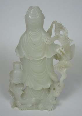 CHINESE CARVED JADE FIGURE OF GUANYIN