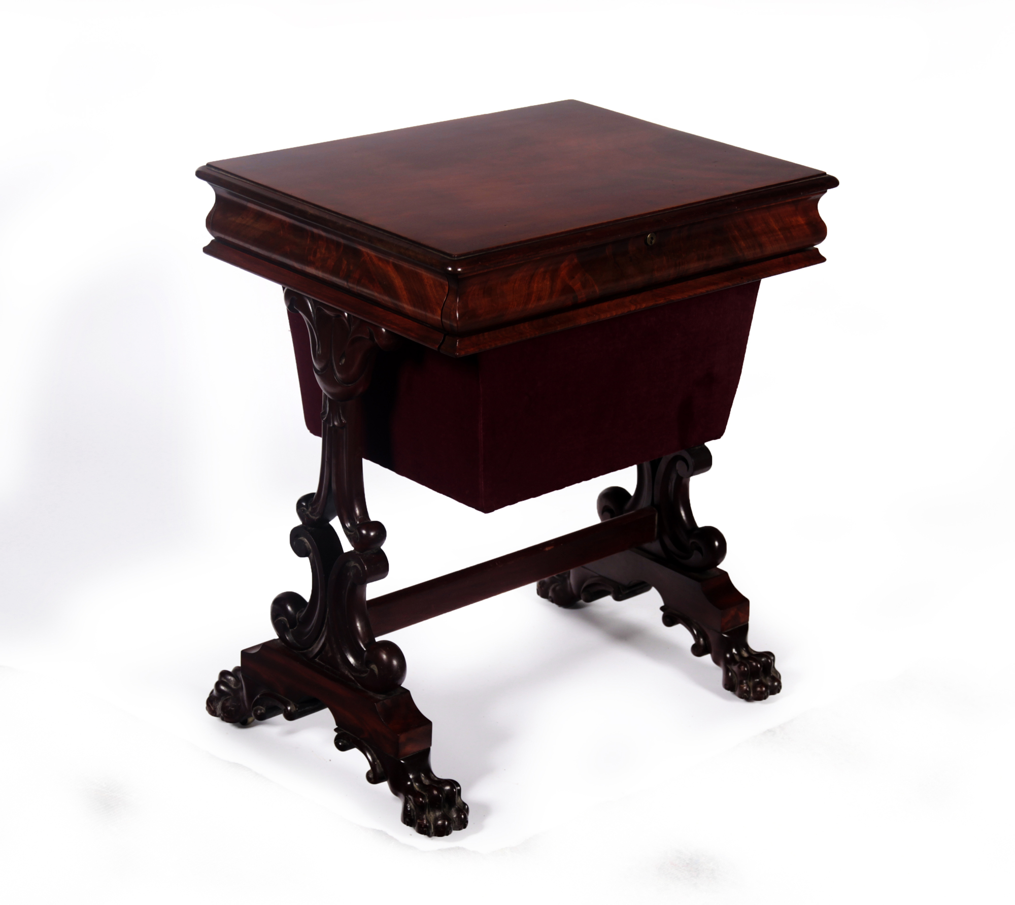 the moulded rectangular top above an ogee frieze, raised on moulded supports and paw feet