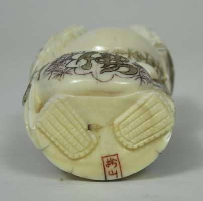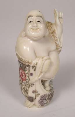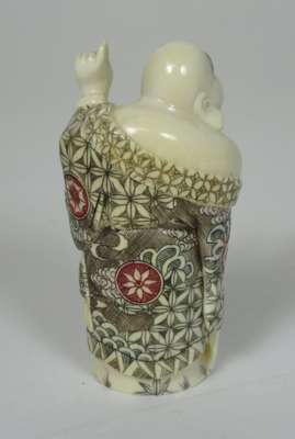 modelled as Hotei, the laughing Buddha, with polychrome clothing and sack