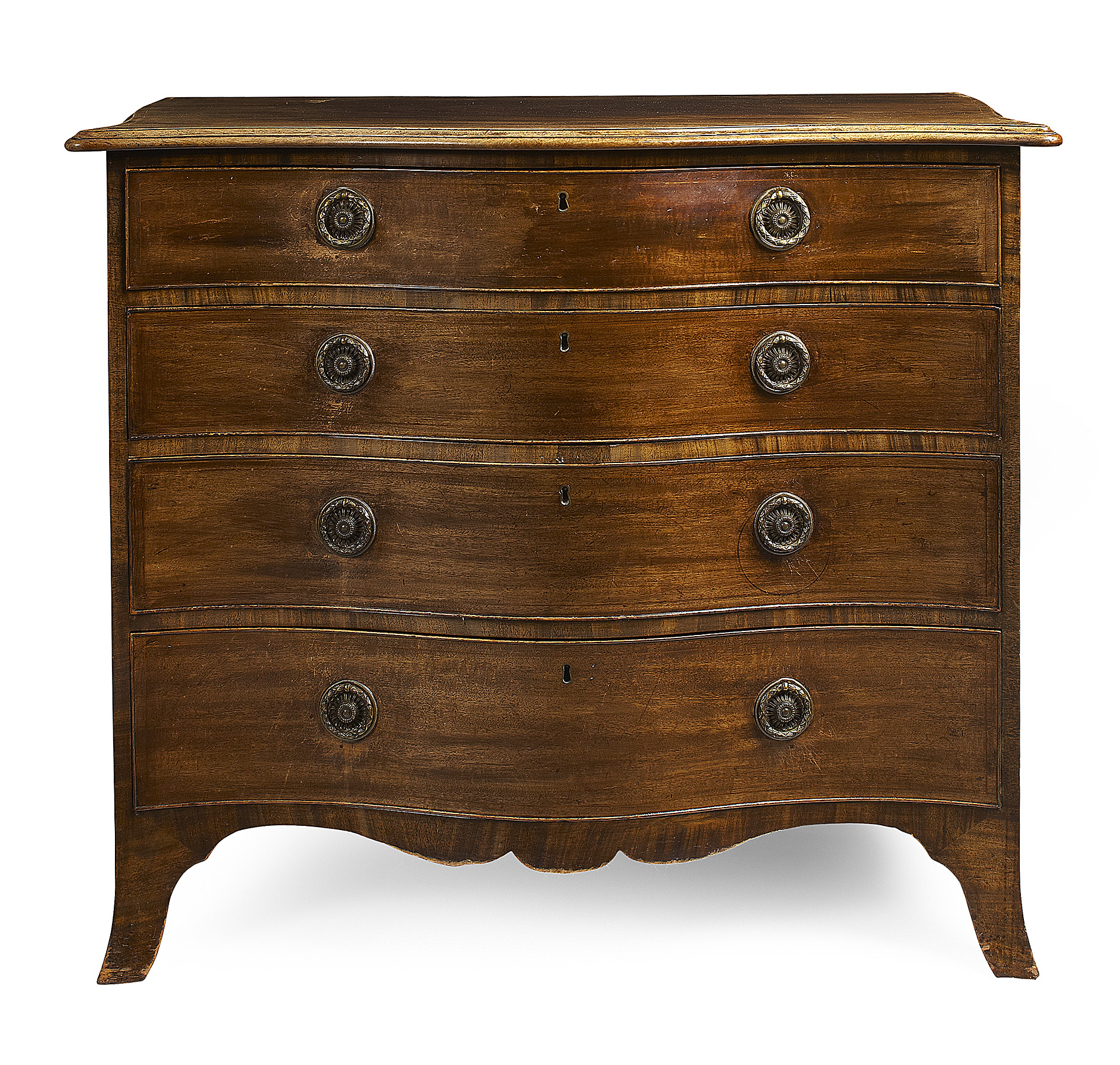 GEORGE III MAHOGANY AND INLAID SERPENTINE CHEST OF DRAWERS