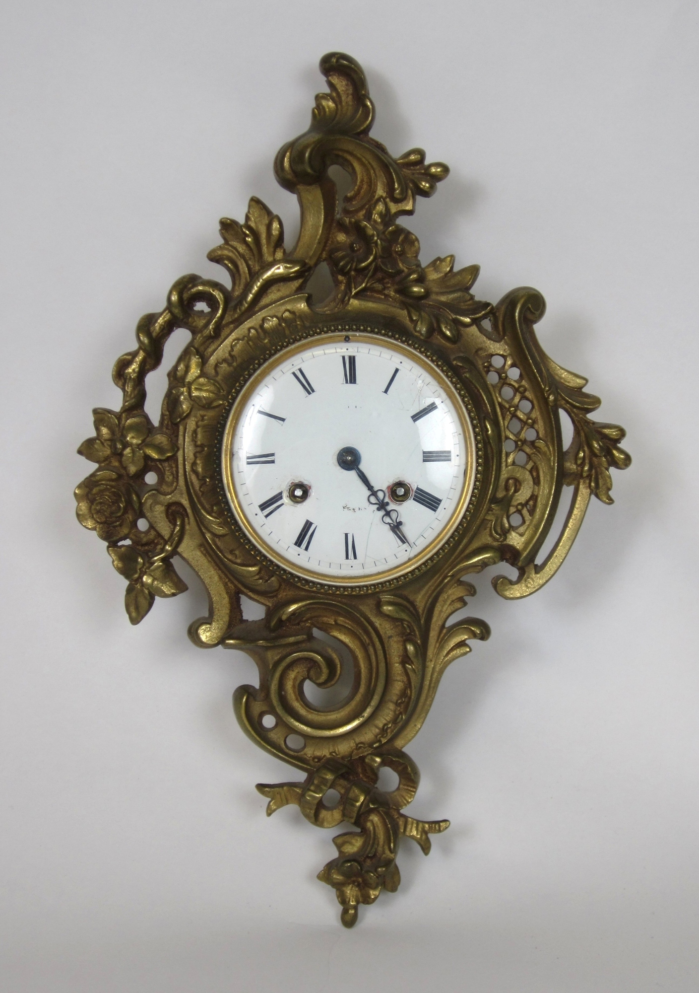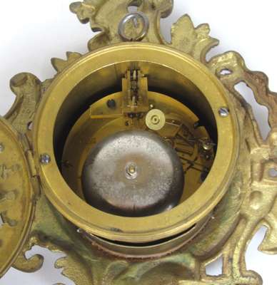 with reticulated rococo style decoration surrounding the white enamelled dial with Roman numerals, the movement striking on a bell, with retailer's inscription 'Rollin A Paris 1794'