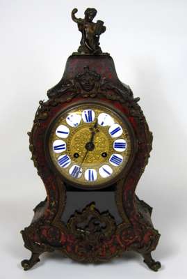 BOULLE MARQUETRY AND BRASS MOUNTED MANTLE CLOCK