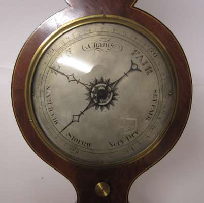 REGENCY MAHOGANY AND BOX EDGED BANJO BAROMETER, J. CROCE YORK