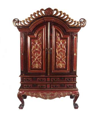 ASIAN PAINTED AND PARCEL GILT WARDROBE