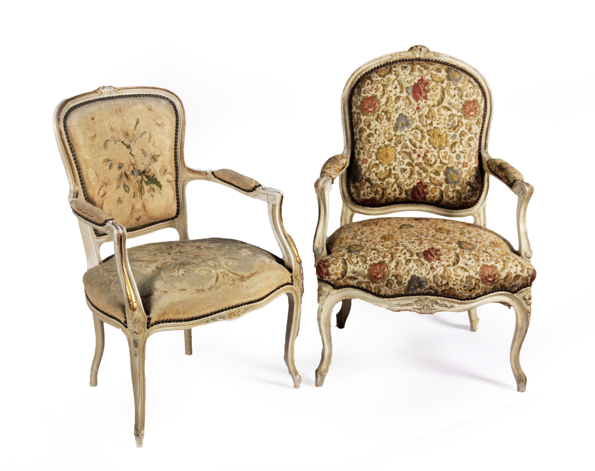 TWO SIMILAR PAINTED FAUTEILS