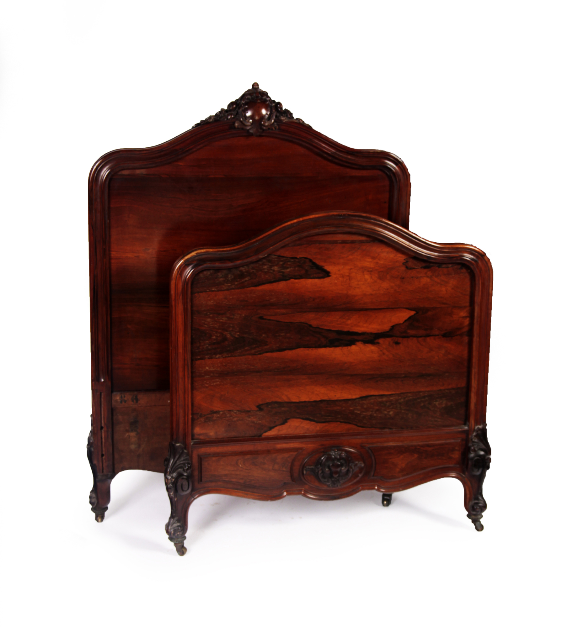 the moulded head and foot boards, united by carved side rails, raised on acanthus carved legs(2)