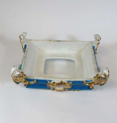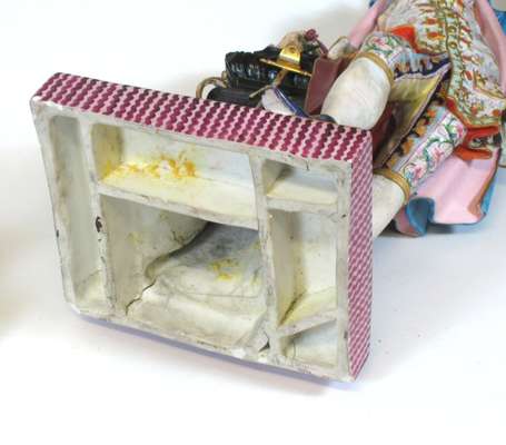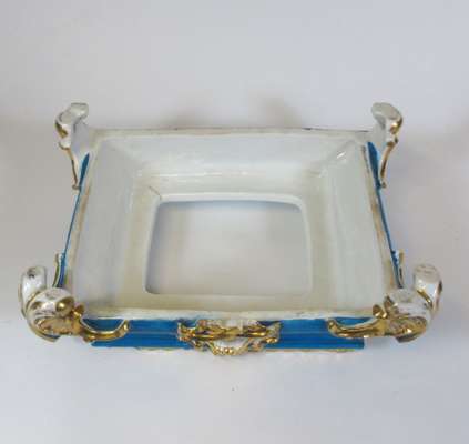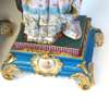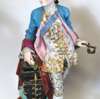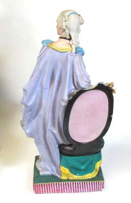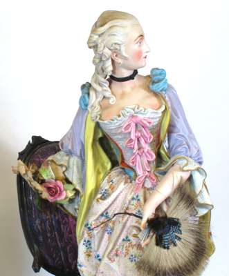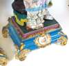 each modelled as a man or a woman in 18th century dress on a gilt and turquoise rococo scroll base (2)