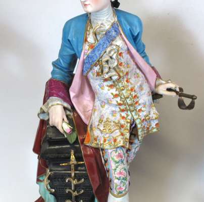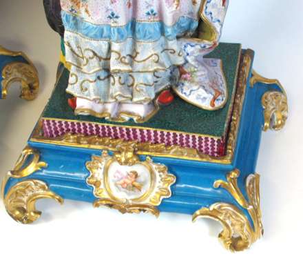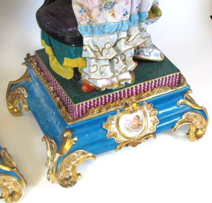 LARGE PAIR OF CONTINENTAL SEVRES STYLE PORCELAIN FIGURES AND STANDS