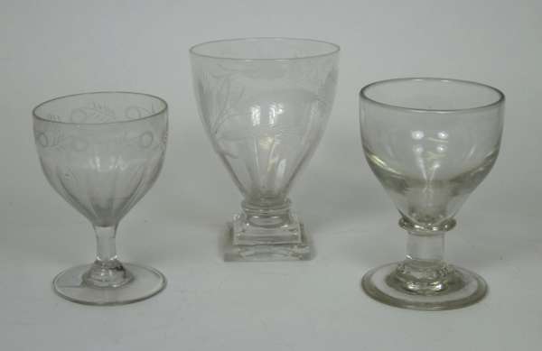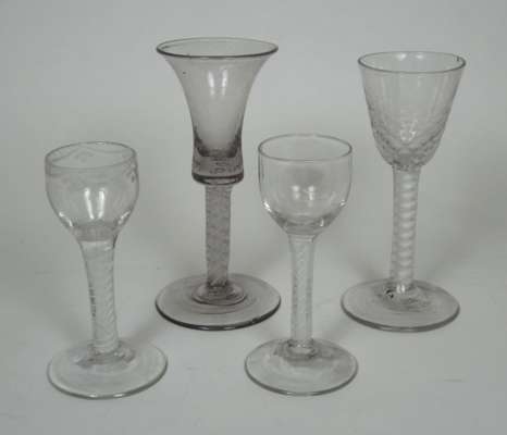 of various shapes and sizes, including four opaque ribbon twist stem glasses and three rummers (12)