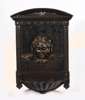 of upright rectangular form, arched surmount, with moulded art nouveau face resting on lily leaves, moulded frame and the water collector in the form of a clam shell, inscribed William Anderson Plumbers Fort William, with a drinking cup attached by chain