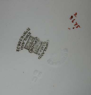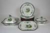 each piece decorated with peonies in a vase within a foliate border, pattern number '8675', maker's marks, comprising of: seven graduated ashets, two square shaped tureens and covers, two smaller oblong tureens and covers, 12 dinner plates, 12 luncheon plates, 10 soup plates and 10 side plates (qty)