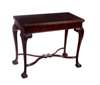 the rectangular swivel top with ribbon carved edge and blue baize inset above a key fret and gadroon carved frieze, on bold acanthus carved cabriole legs united by serpentine cross stretchers, ending in claw and ball feet