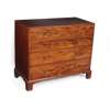 the plain top above two short and three graduated long drawers, brass loop handles and raised on bracket feet